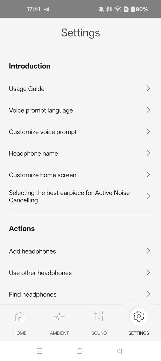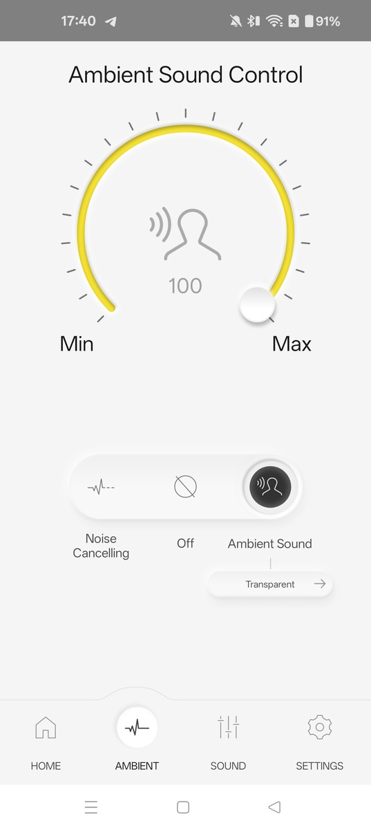 Activating and setting active noise reduction (ANC), transparency mode, disabling these functions