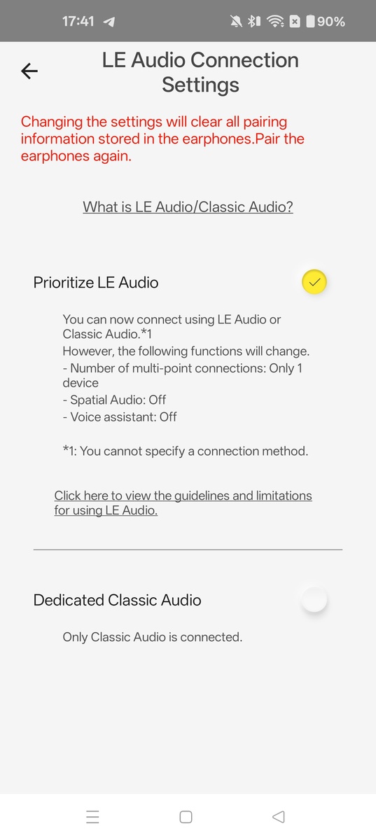 LDAC, AAC, and SBC codecs remain, and there’s a new LC3 codec compared to the AZ80 version.