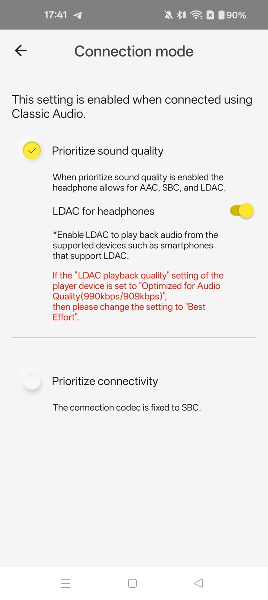 Change the Codec. The headphones support the LDAC codec. Select the codec in your phone’s settings or the proprietary app.