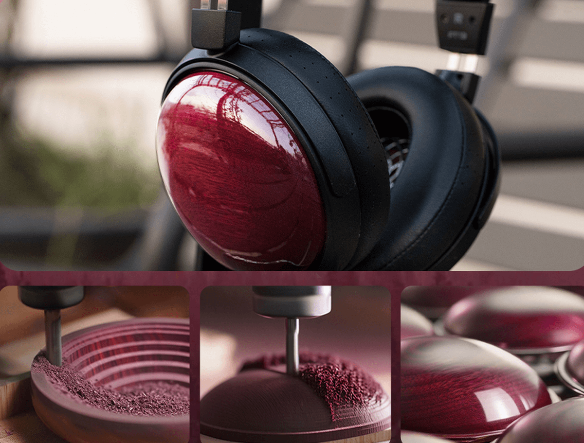 Дизайн и материалы. Чашки из древесины Purpleheart с естественным фиолетовым оттенком, обработанной более 20 раз для прочности и минимального резонанса. Оголовье из магниевого сплава с овчиной и триосевое вращение чашек со шарикоподшипниковыми слайдерами дают точную подгонку. Внутри — U-образная демпфирующая трубка и звукопоглощающий хлопок для глубокого баса. Компактные чашки могут быть тесными для больших ушей, а свободная посадка иногда снижает герметичность. Вес около 385 г.