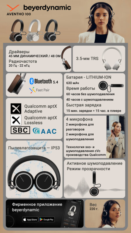 Приложение. Для работы с наушниками есть приложение beyerdynamic для Android и для iOS. В приложении вы можете настроить шумоподавление, персонализировать звук и настроить эквалайзер. А ещё получить важные обновления и по опыту первой версии наушников, Beyerdynamic не бросают поддержку и вносят исправления даже через 3 года после выхода наушников.