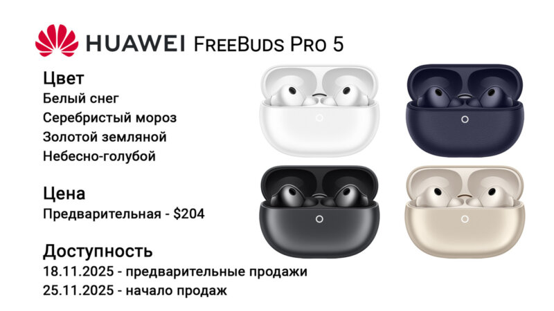 - HUAWEI FreeBuds Pro 5 дата выхода — 06.11.2025