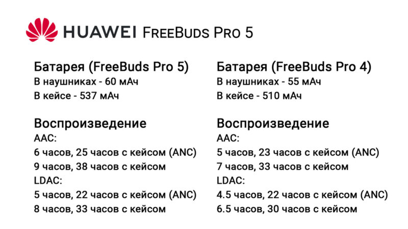 ![НОВЫЕ 🔥 HUAWEI FreeBuds Pro 5 (2025) vs HUAWEI FreeBuds Pro 4 (2024) — Что Нового? [НОВОСТЬ] 54 Сравнение времени работы HUAWEI FreeBuds Pro 5 и HUAWEI FreeBuds Pro 4](https://mychooz.com/wp-content/uploads/2025/11/sravnenie-vremeni-raboty-4-pro-i-5-pro.jpg)