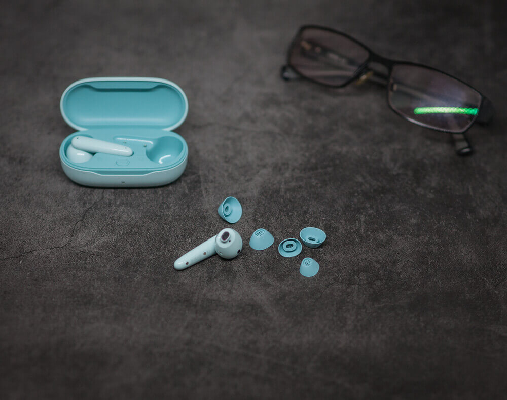 Особенности. По идее, наушники должны быть комфортны и любителям вкладышей, и тем, кто предпочитает вакуумные модели. Ведь форм-фактор тут средний. Амбушюры надеваются на выступающий узкий звуковод. Но форма у них плоская. Надеваются широкой стороной внутрь. Хотя никто не мешает поэкспериментировать и перевернуть. 😉 Решение не уникальное, его можно увидеть у Comfobuds, Bose и не только.