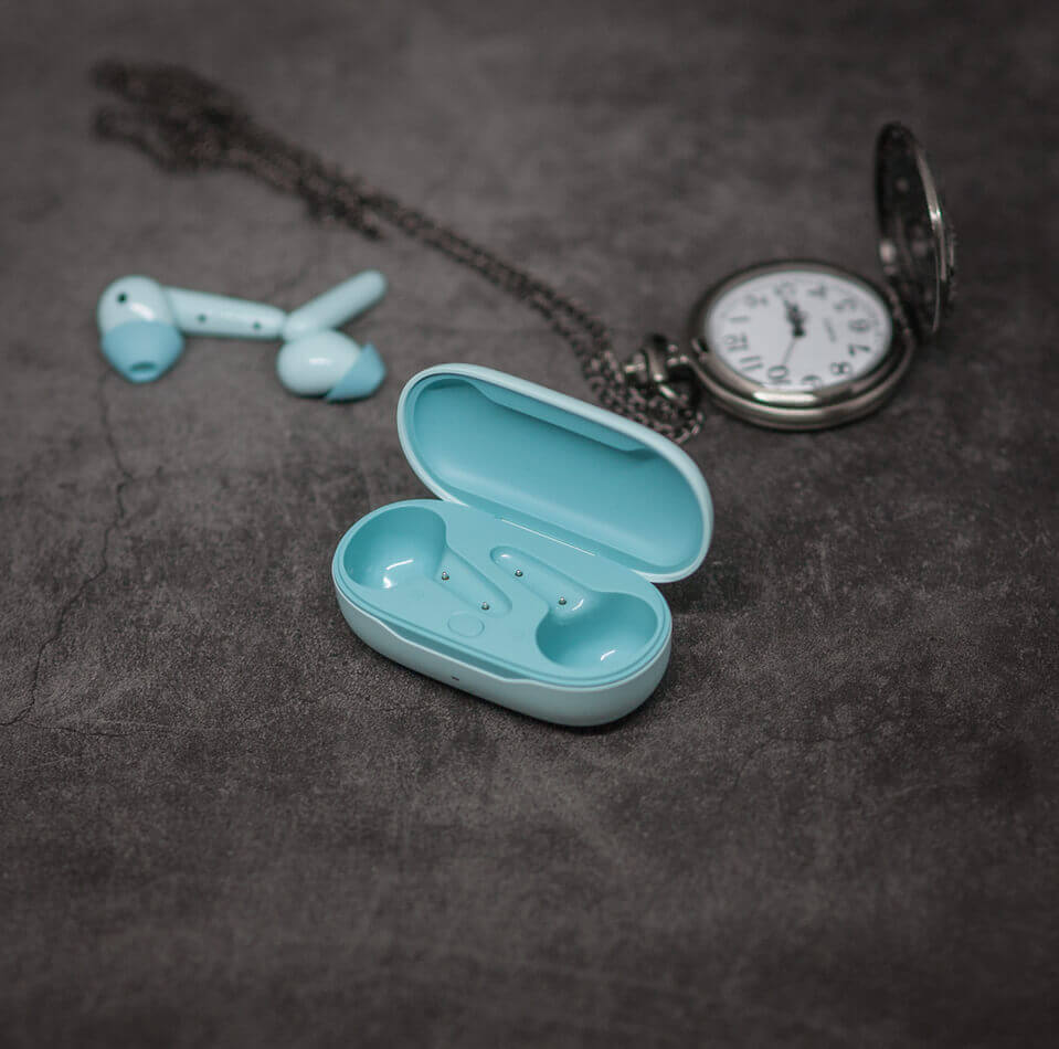 - Отображение заряда в процентах. Отдельно для каждого наушника и кейса.