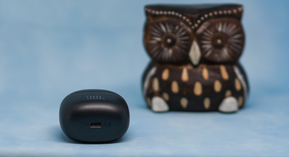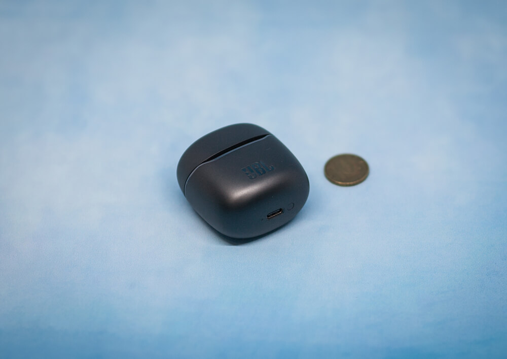 - JBL Tour Pro+ TWS кейс снизу, разъём, индикатор и кнопка