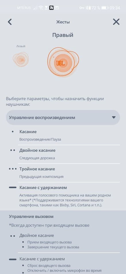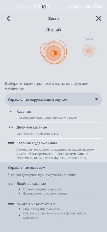 - JBL Tour Pro+ TWS приложение, настройка жестов