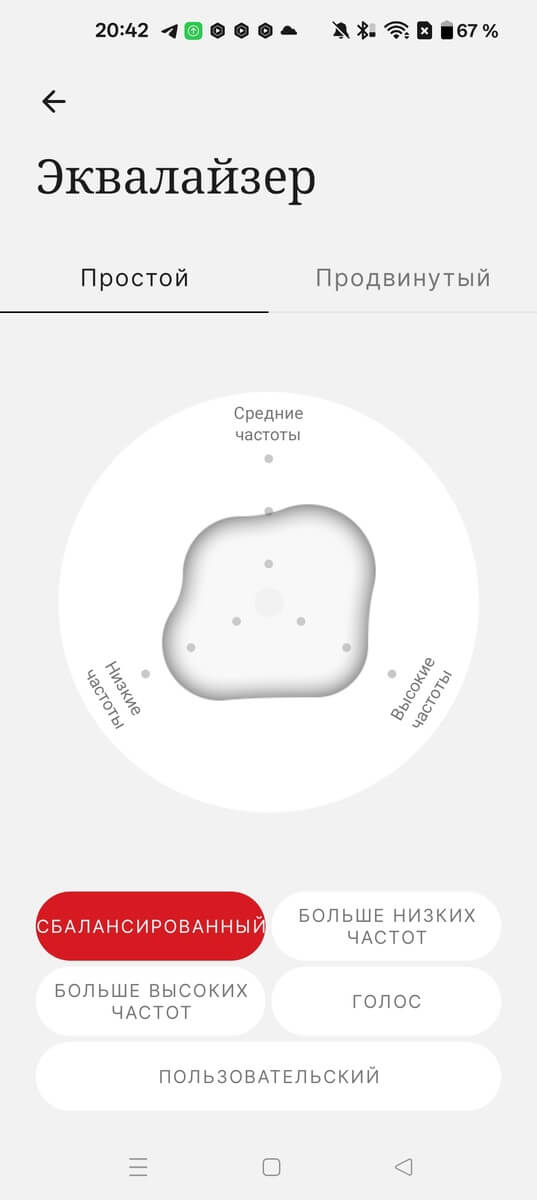 Также доступны 4 готовых пресета + пользовательский, в простом эквалайзере. Лучший простой пресет «больше высоких частот». Есть отдельный крутой, продвинутый 8 полосный эквалайзер, с детальной настройкой + настройкой добротности.