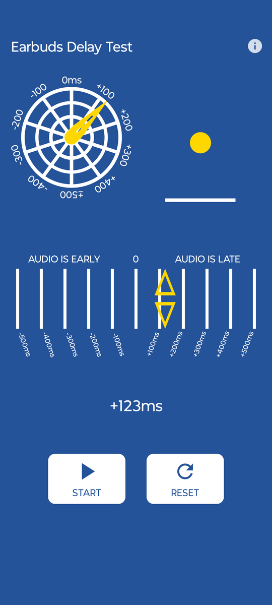 Проверка задержки звука через приложение Earbuds Delay Test. (Google Play).