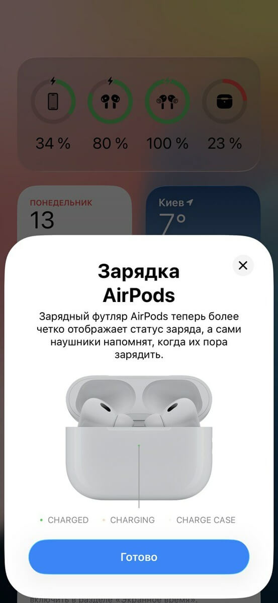 - Системные поп-апы батареи, Ear Tip Fit Test и расширенные настройки в iOS.