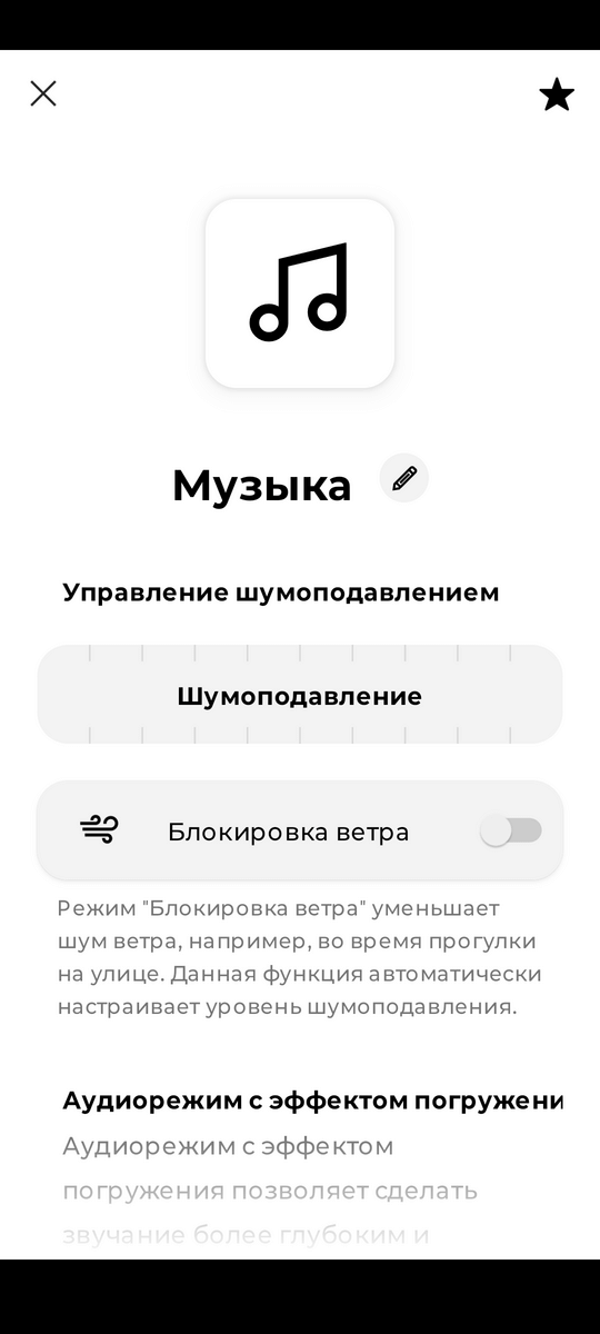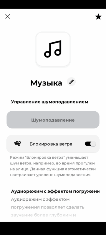 - Переключение режимов. Создайте режимы шумоподавления и прозрачности в приложении. Зажмите МФК и держите пока не сменится режим.