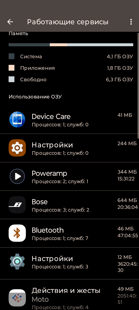 - Использование оперативной памяти — 644 МБ (Motorola Edge 20 Pro на Android).