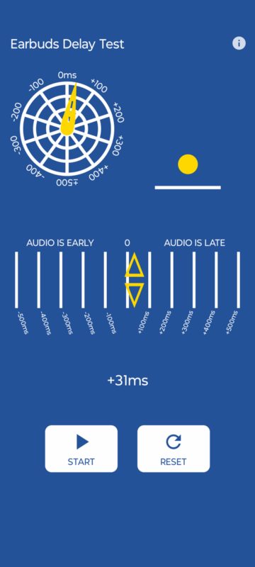 Проверка задержки звука через приложение Earbuds Delay Test. (Google Play).
