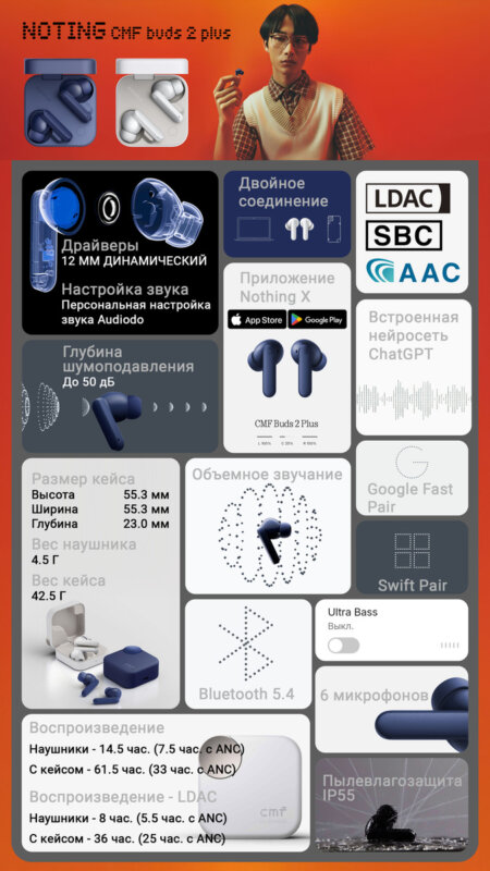 Самое интересное в CMF buds 2 Plus — что заявляет производитель: