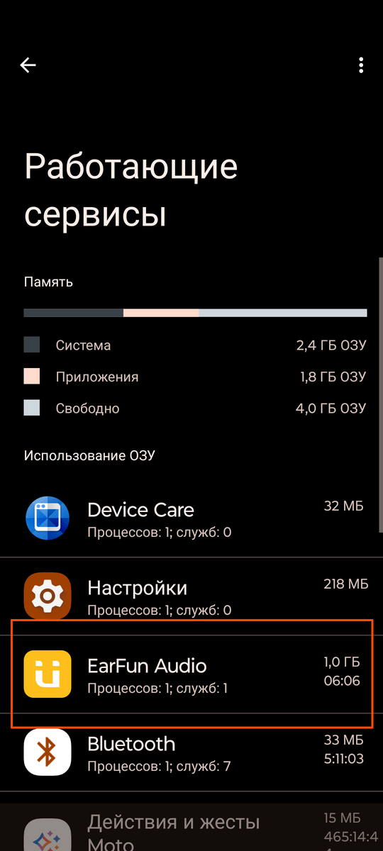 Приложение EarFun Audio использует 1 ГБ оперативной памяти на Android.