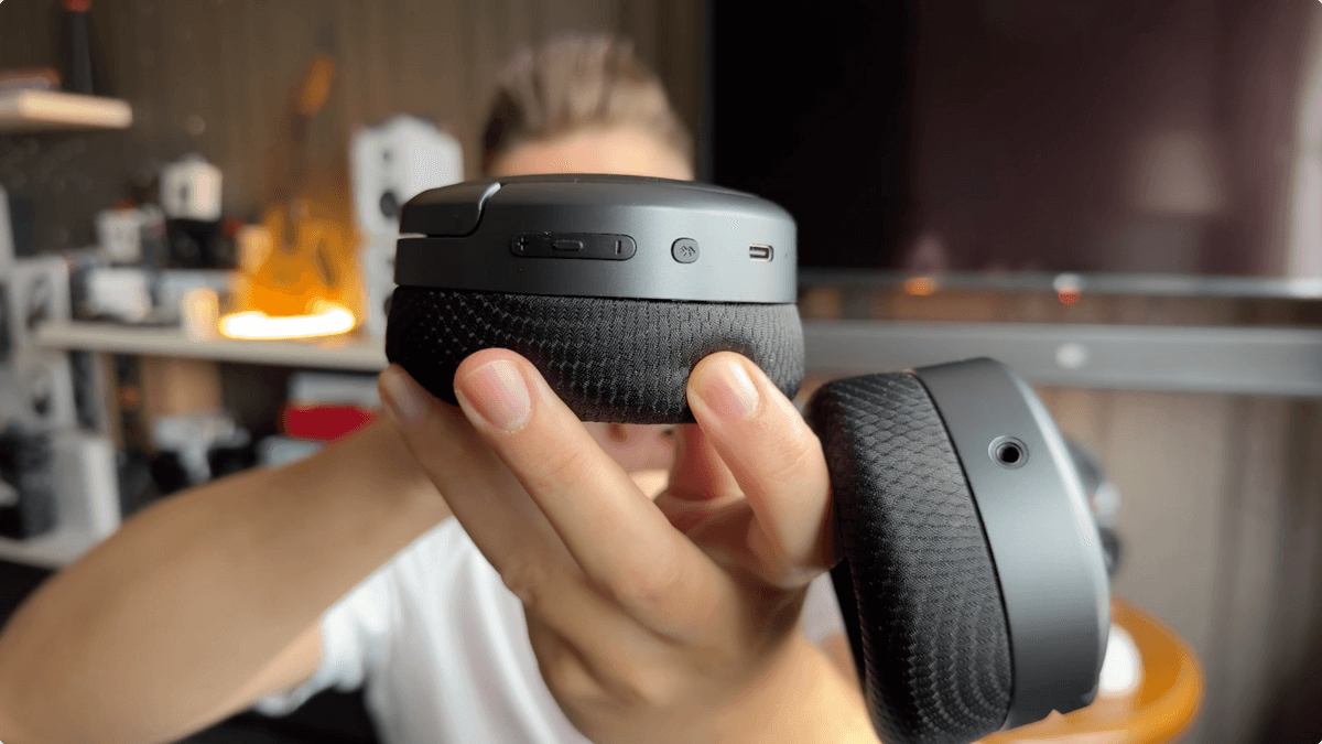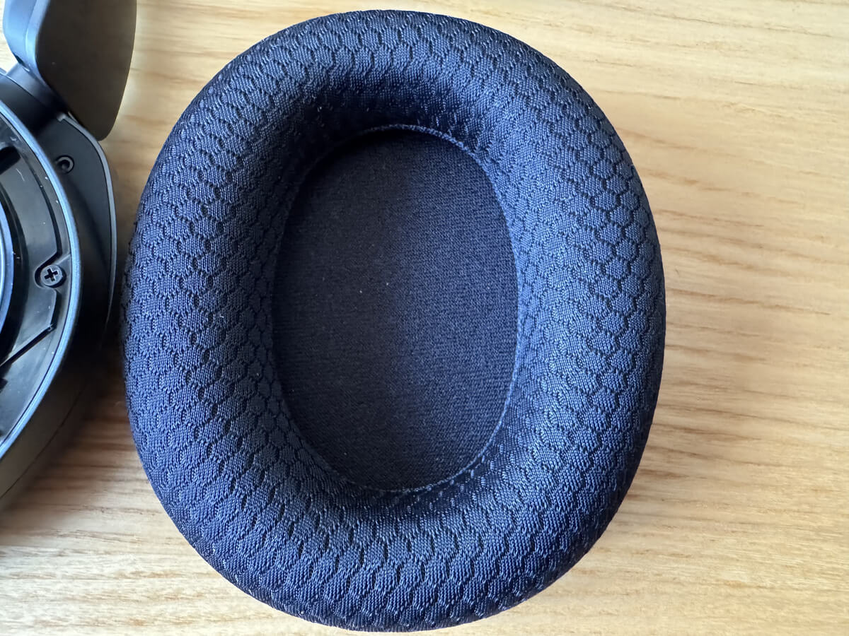 Комфорт — 9/10 9 (❗️эталон Apple AirPods Pro 2, cреди полноразмерных Sennehiser Momentum 4 Wireless). Наушники удобные, можно пользоваться 3 часа без перерывов. Но наушники ощутимые 347 г, ощущаются на голове и поддавливают. Складываются и проворачиваются чаши, чтобы наушники были в плоском состоянии. Есть 2 пары амбушюр на выбор, сетчатые из ткани и кожаные. Сетчатые ОЧЕНЬ удобные, напомнили модели от SteelSeries. Кожанные — ок.