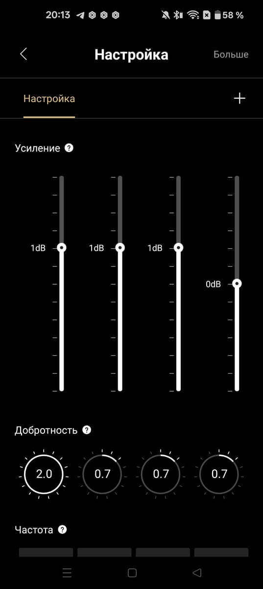 Звук с настройкой эквалайзера 8 Я рекомендую зайти в эквалайзер в приложении эквалайзер и включит пресет «динамичный». Получите лучше бас. Это единственное, что исправляется немного. Руками мне так и не удалось нарулить что-то стоящее, ручной эквалайзер имеет 4 полосы и так себе по удобству и функционалу.