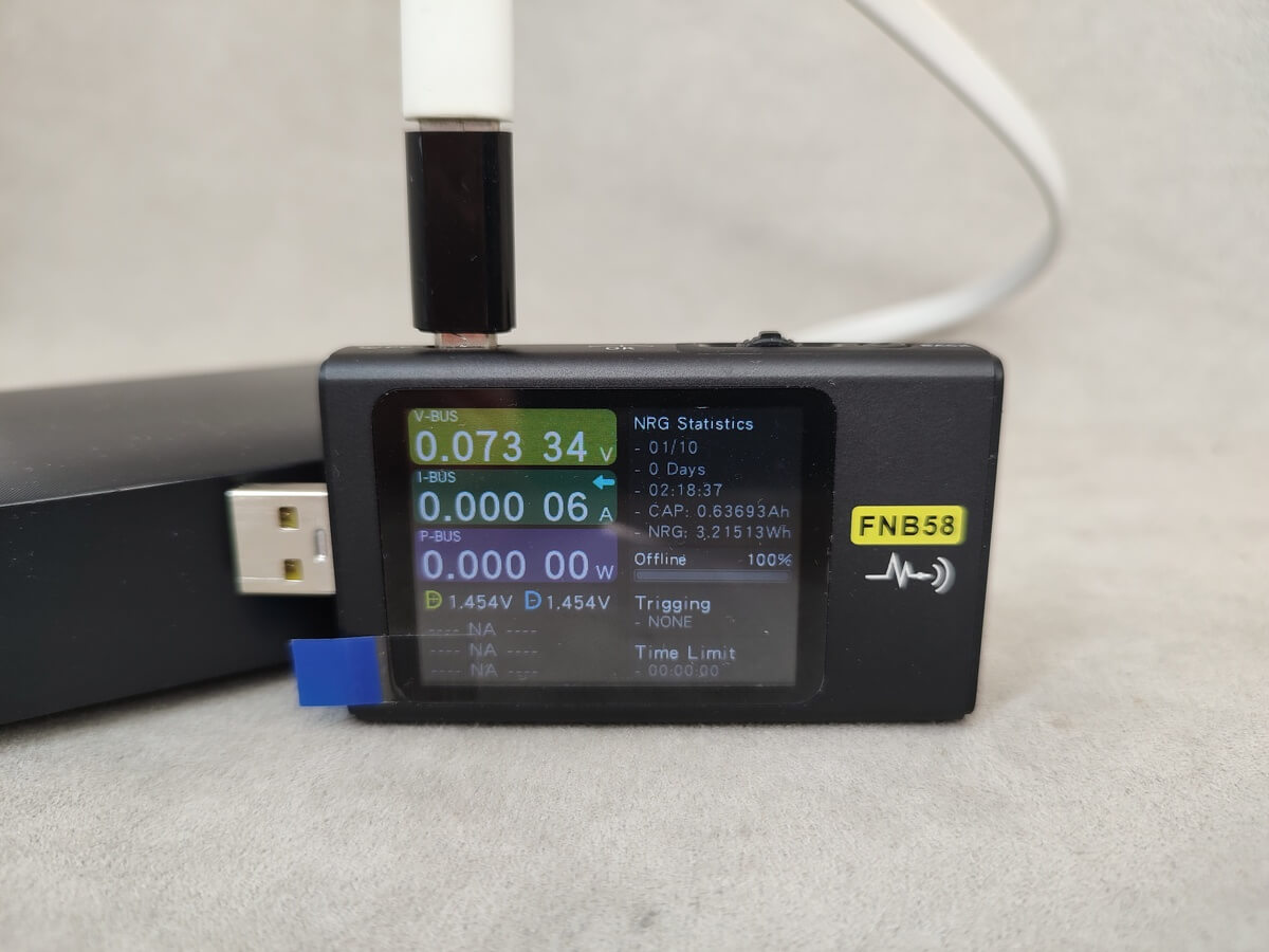 Время зарядки кейса с 0 до 100% — 2 часа и 18 минут.