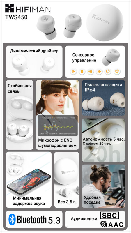HIFIMAN TWS450 — это беспроводные внутриканальные TWS наушники 2025 года за $17. Это самые доступные беспроводные наушники производителя. Ещё это Bluetooth наушники без ножки, а такие модели редкость на MyChooz. А вот обзоров на бюджетных моделей в достатке. Лидером с учетом цены и качества звучания остаются KZ Carol ($20), а эталоном до $30 — Realme Buds Air 7 ($34). Давайте посмотрим как себя покажут внутриканальные наушники HIFIMAN TWS450 в такой плотной конкуренции.