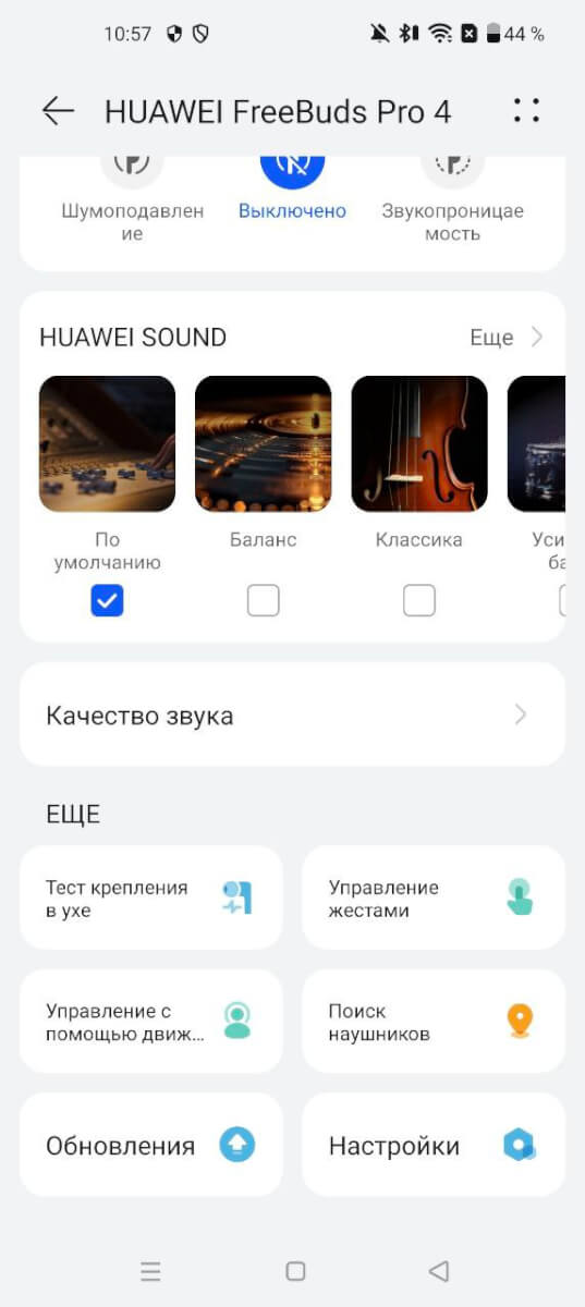Звук HUAWEI FreeBuds Pro 4 — по дефолту, с умеренными низкими частотами, эмоциональный, с прозрачной серединой и в меру яркими высокими. Критичных недостатков в звучании нет, но минусы есть. Звук мне понравился без всяких настроек, на дефолтной настройке эквалайзера, пресеты какие-то не очень удачные. Однако включить приоритет звучания в фирменном приложении, все равно нужно, это включение кодека LDAC.