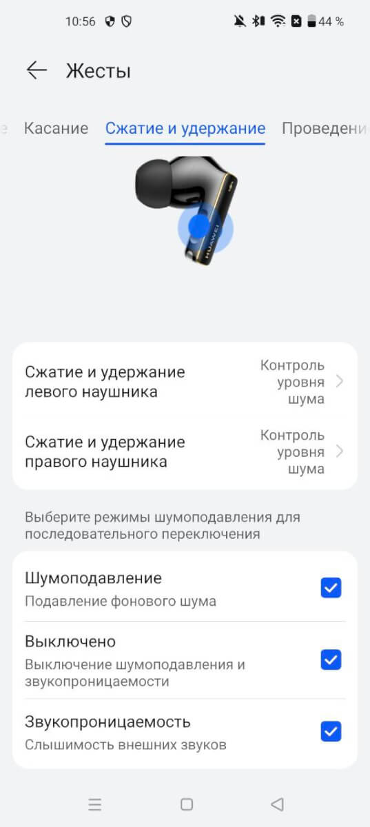 Активация и настройка активного шумоподавления (ANC), режима прозрачности