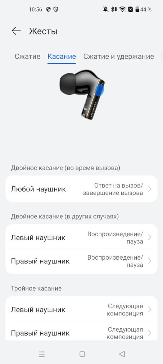 Управление — 10/10. Это пример того как сделать эталонное управление, все удобно и нет никаких проблем. В HUAWEI FreeBuds Pro 4 реализовано, сжатие стержня, касание по стержню, и свайпы вверх-вниз. Более того, вы можете отвечать на звонки или отклонять их, совсем не используя руки: просто кивните или покачайте головой. Все работает удобно, можно даже управлять наушниками, касаясь к уху, а не к самим наушникам. Тут HUAWEI FreeBuds Pro 4 — переплюнули Aripods Pro 2.