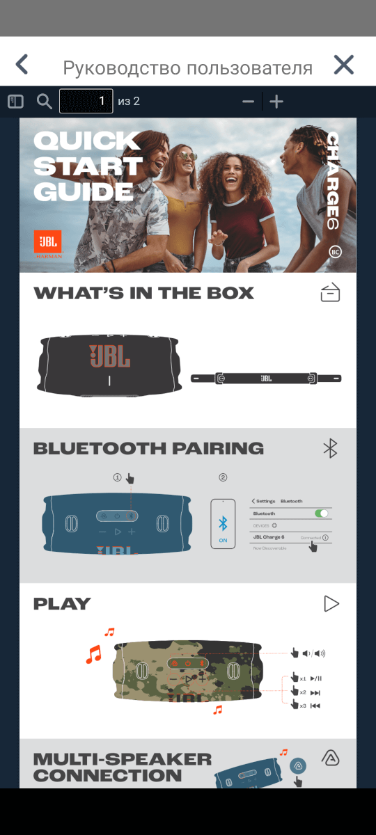 Стереогруппа — подключение другой колонки JBL Charge 6.