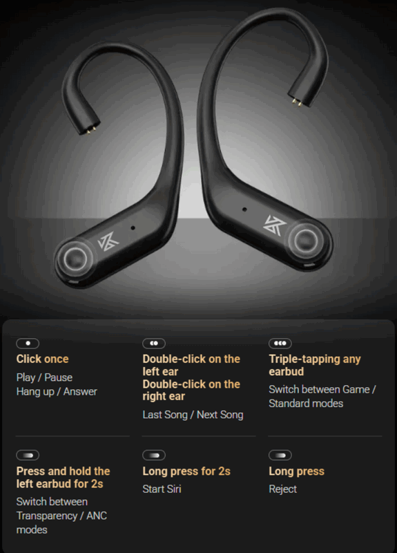 Bluetooth-адаптеры KZ AN01 — это сочетание активного шумоподавления (ANC) и поддержки кодека LDAC в формате заушных адаптеров. Система ANC с четырьмя микрофонами снижает окружающий шум до 40 дБ, также предусмотрен режим прозрачности. За качество звука отвечает Bluetooth 5.4 с поддержкой кодека LDAC (до 990 кбит/с для Android), а для игр и видео есть режим с низкой задержкой 40 мс. Адаптеры выполнены из силикона, весят по 4 грамма, защищены от пота по стандарту IPX4 и управляются физическими кнопками. Одного заряда хватает на 7–8 часов, а зарядный кейс на 400 мАч увеличивает общее время работы до 40 часов. Адаптеры совместимы с наушниками с разъёмом 2-pin (QDC). Но обо всём по порядку.
