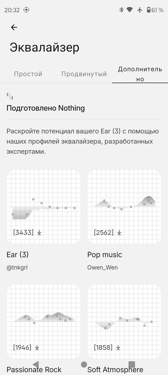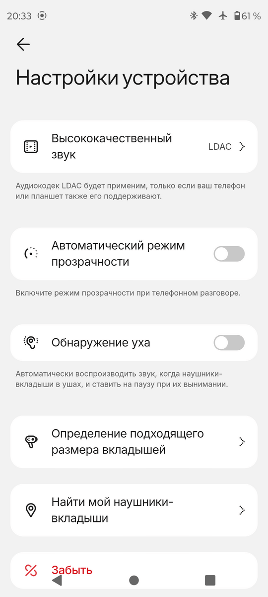 Я тестировал наушники на Motorola Edge 20 Pro, звук из коробки по кодеку LDAC. Кодек включается в фирменном приложении Nothing X для Android. После активации, кодек LDAC включается автоматически на любом совместимом телефоне или планшете. Потенциал к настройке звука эквалайзером есть, при этом острой необходимости в настройке нет.