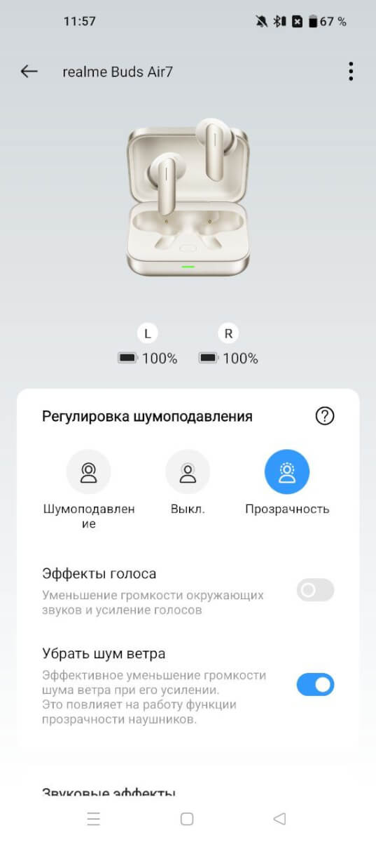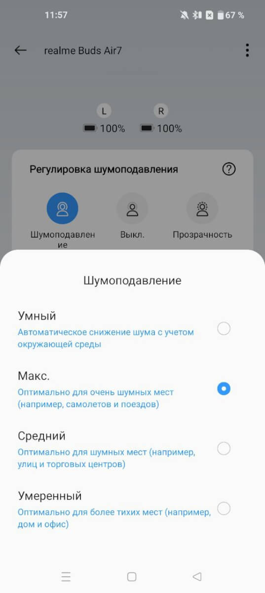 Шумоподавление и режим прозрачности.