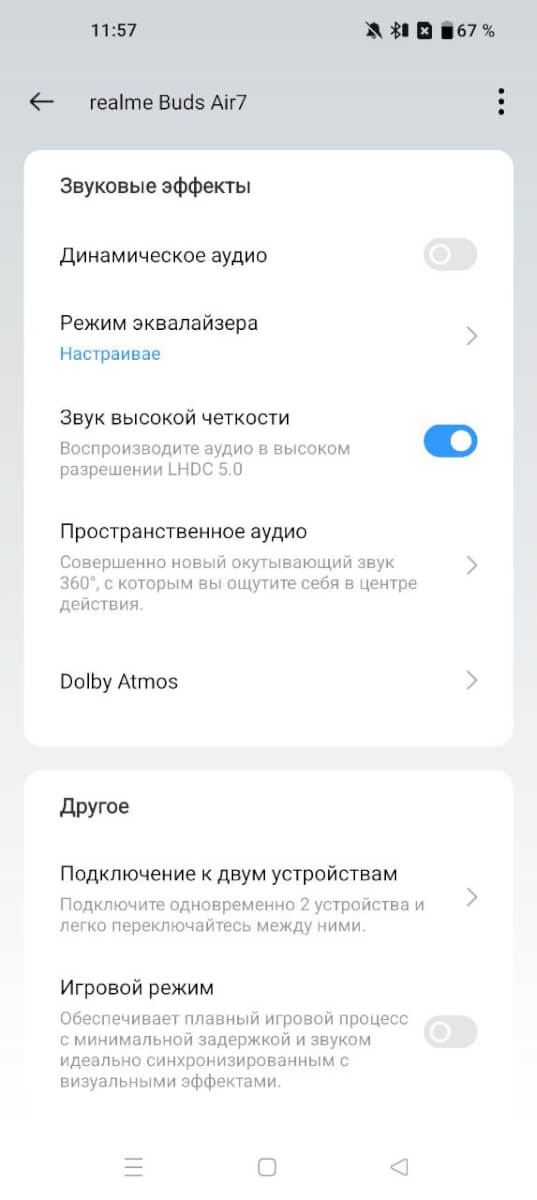 Приложение — 9/10 — отличное, есть почти все что нужно. Realme Link вы можете скачать для Android и iOS. Главное, что я рекомендую использовать: проверить включенный ползунок «звук высокой четкости», это включение кодека LHDC. Попробуйте пространственное аудио — работает очень прикольно, особенно в играх. В настройках шумоподавления, ставьте сразу на максимум. Звуковые уведомления стали приятнее чем в 6‑й версии. -1 балл, за отсутствие поиска наушников, эквалайзер «динамическое аудио» — не работает.