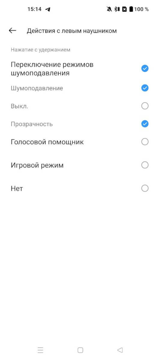 Активация и настройка активного шумоподавления (ANC), режима прозрачности