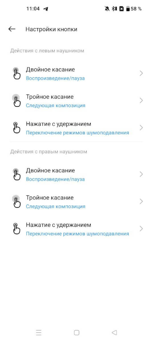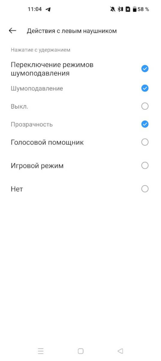 Активация и настройка активного шумоподавления (ANC), режима прозрачности, отключение этих функций.