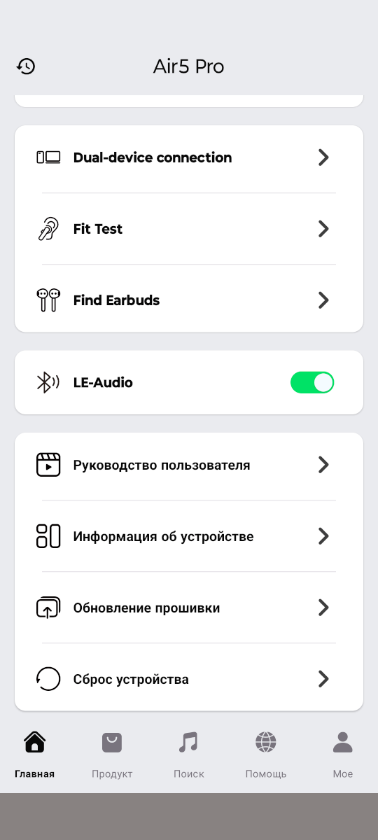- С каждым повторным подключением наушников нужно выбирать модель наушников из списка и ждать 5-7 сек. обновление информации. Иногда перезаходить нужно когда наушники подключены.