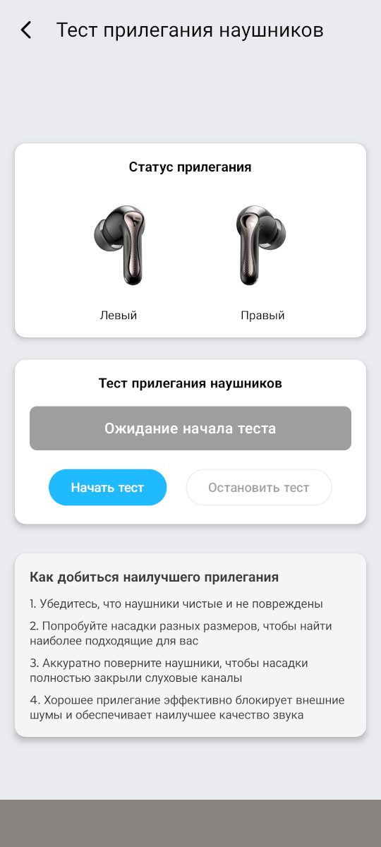 - Проверка прилегания — проверяет плотность прилегания амбушюр.