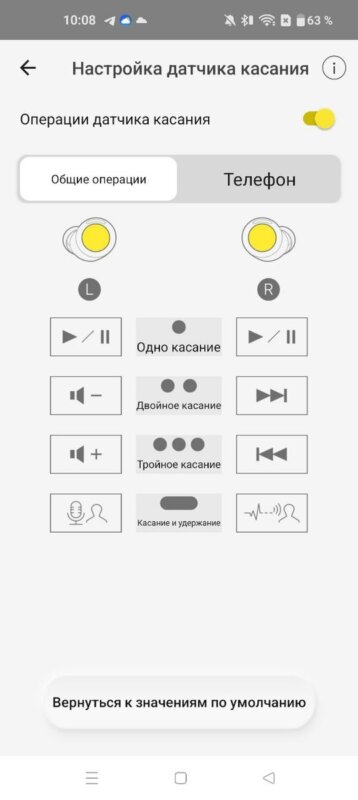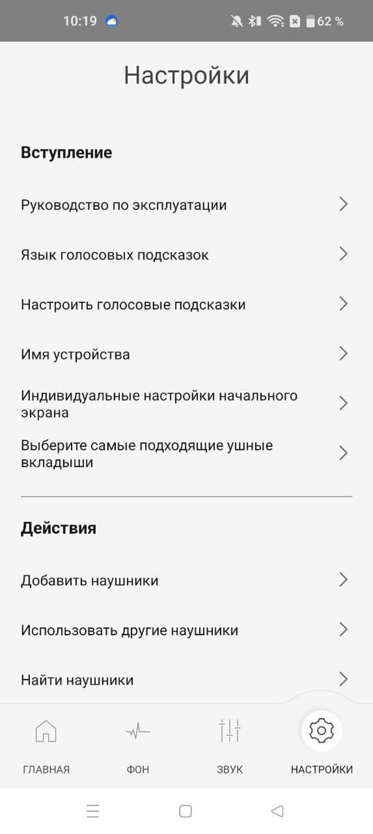 Активация и настройка активного шумоподавления (ANC), режима прозрачности, отключение этих функций
