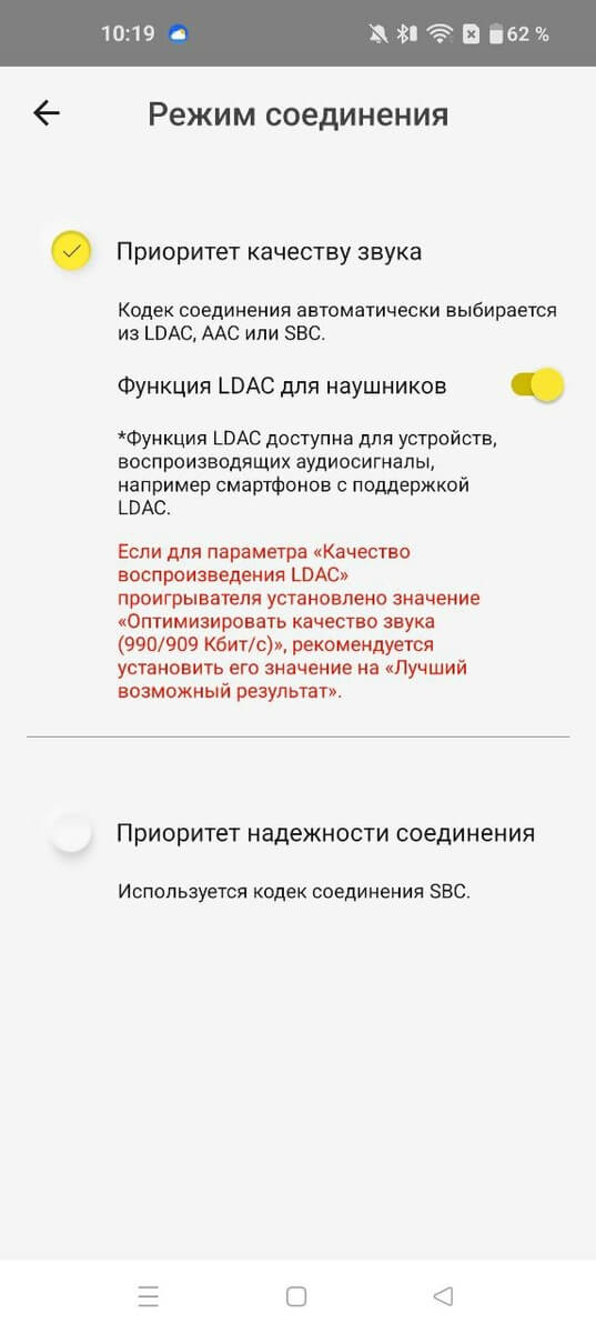 Смените кодек. Наушники поддерживают кодек LDAC. Выберите кодек в настройках телефона или фирменном приложении. Подробнее про кодеки.