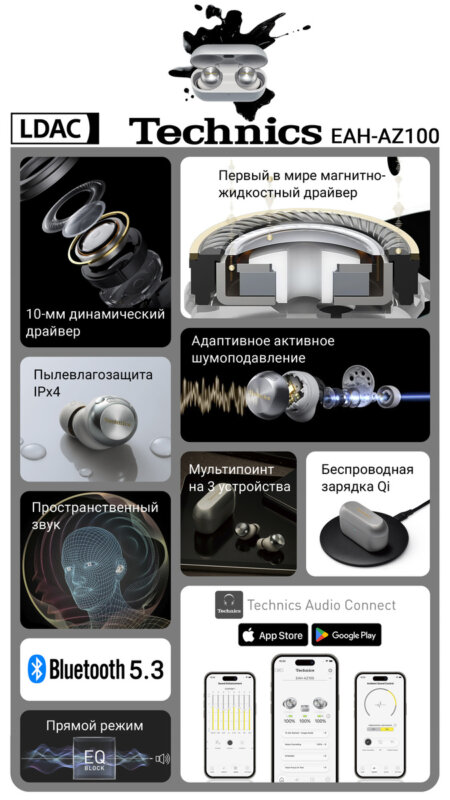 Самое интересное в Technics EAH-AZ100 — что заявляет производитель: