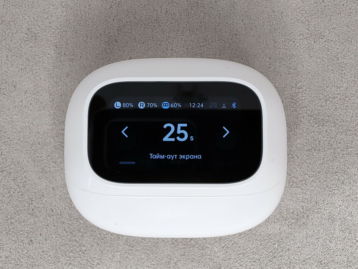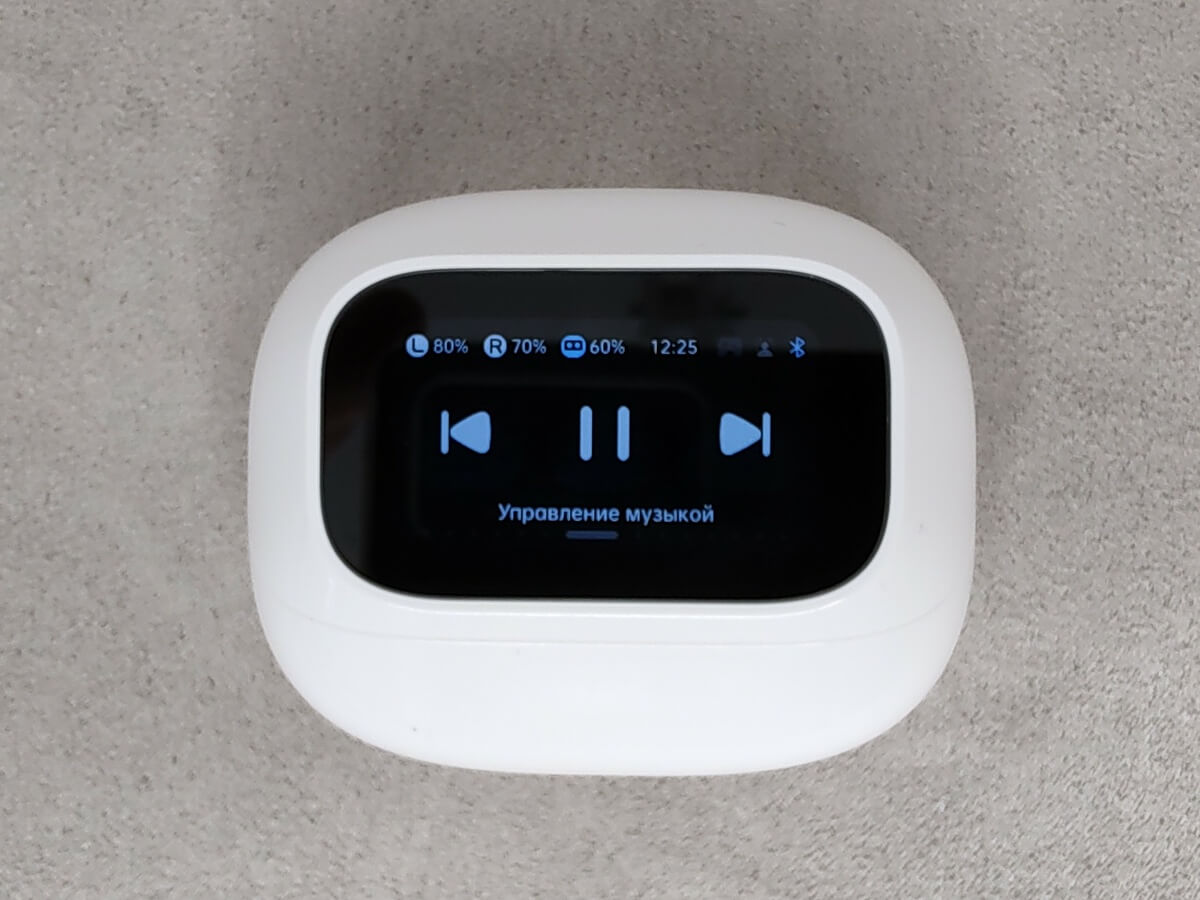 Другое дело управление. С экраном можно выполнять все нужные действия без приложения. Не хватает только кнопки принять и отклонить вызов. А так всё доступно и понятно. Порадовала приятная анимация с учетом режима — батарея кейса разряжена или кейс на зарядке. Можно скролить страницы на телефоне, планшете и ПК. Поэтому если вы ищите звук, конкуренты ниже дадут лучше качество звучания. А если удобство управления — тогда рекомендую UGREEN EchoBuds Magic. И как бонус вы получите гарантию качества, чего не дают неизвестные производители похожих наушников с экраном до $15.