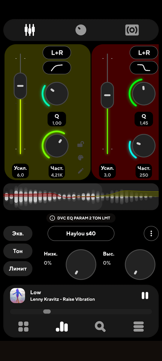 На 5.5/10 я оцениваю звук с моим пресетом эквалайзера Haylou s40 в плеере PowerAMP — 3й скриншот. Хорошая объемность и менее гулкий бас, немного лучше прозрачность и натуральность.