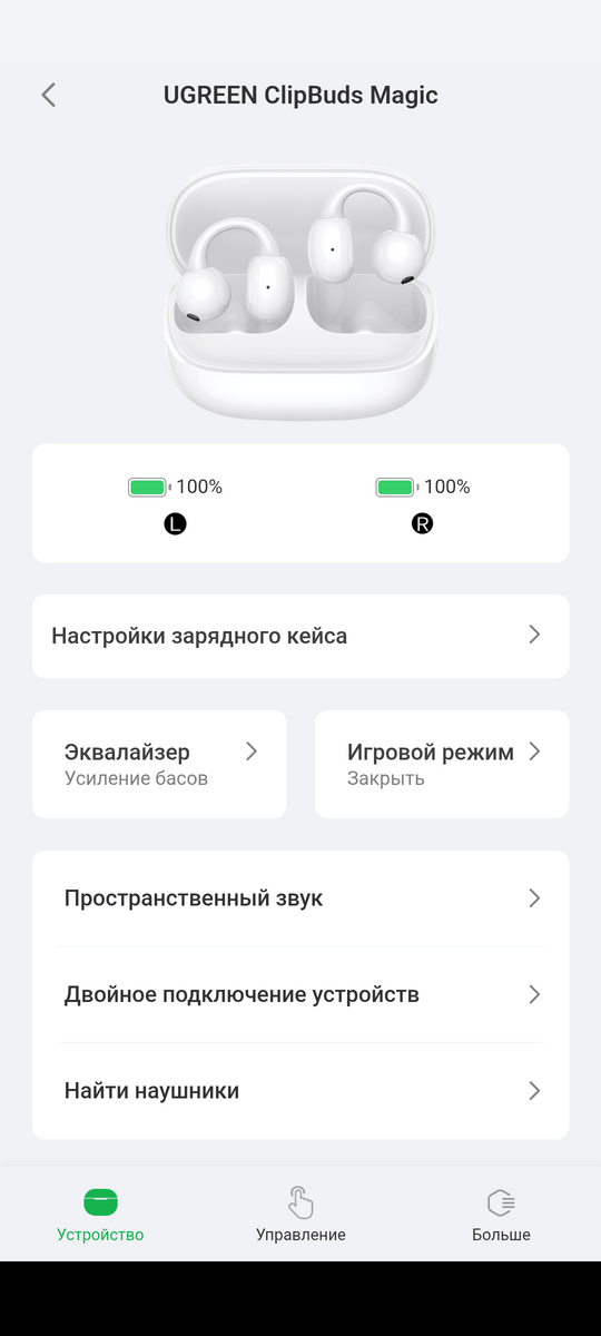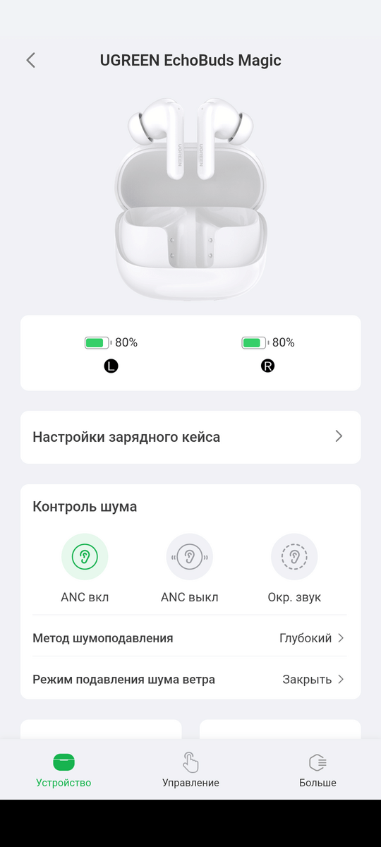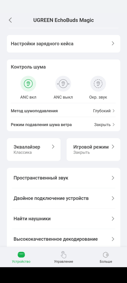 Приложение — 6/10 (❗️эталон Realme Link). UGREEN Home App вы можете скачать для Android и iOS. Приложение удобное — все функции собраны на двух экранах. В приложении активируется кодек LDAC и настраивается управление.