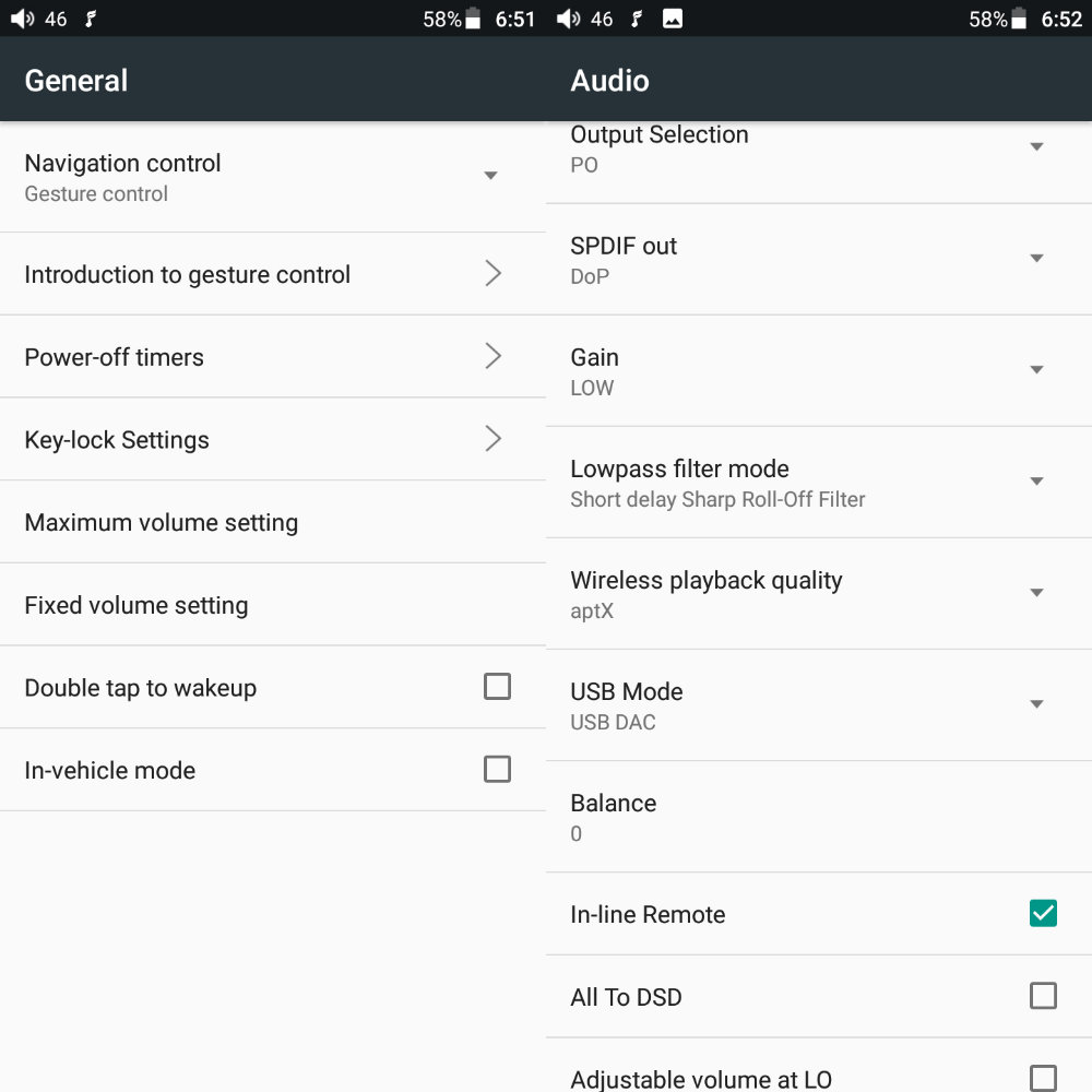В настройках плеера есть некоторые функций которые были внедрены программистами FiiO, они находятся в разделах General и Audio: