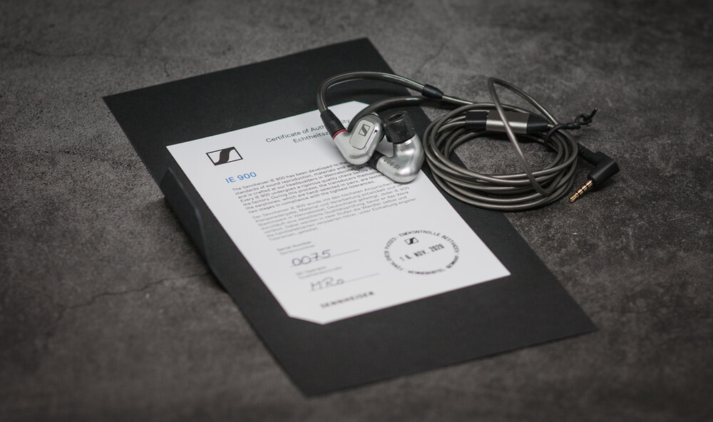 3 кабеля – это мощно. Но самая необычная часть комплекта – это, конечно, сертификат с серийным номером, печатью с датой производства и подписью. Собрано вручную в Германии, как-никак. 😎 Кстати, этот же серийный номер (ко мне, например, приехал 75й экземпляр) выгравирован на металлической вставке с одной из сторон кейса. Эти моменты особенно греют, когда вспоминаешь, сколько наушники стоят. 😉