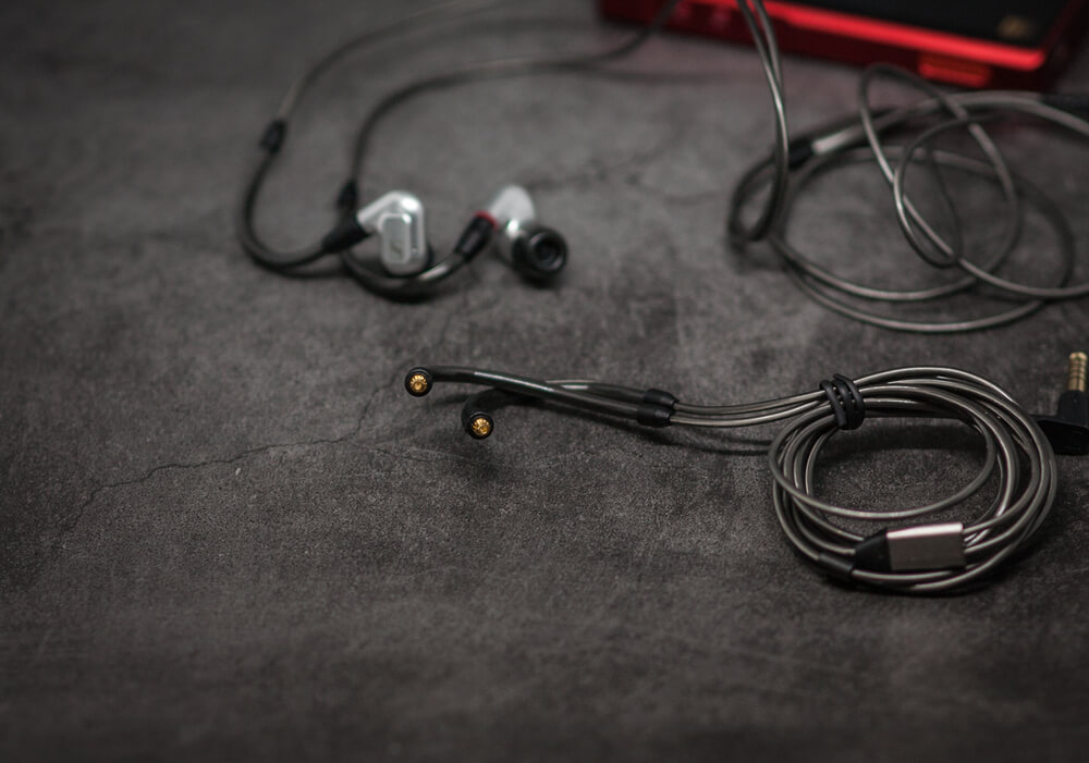 - Sennheiser IE 900 комплектные провода, разные штекеры (3,5 мм, 2,5 мм и 4,4 мм)