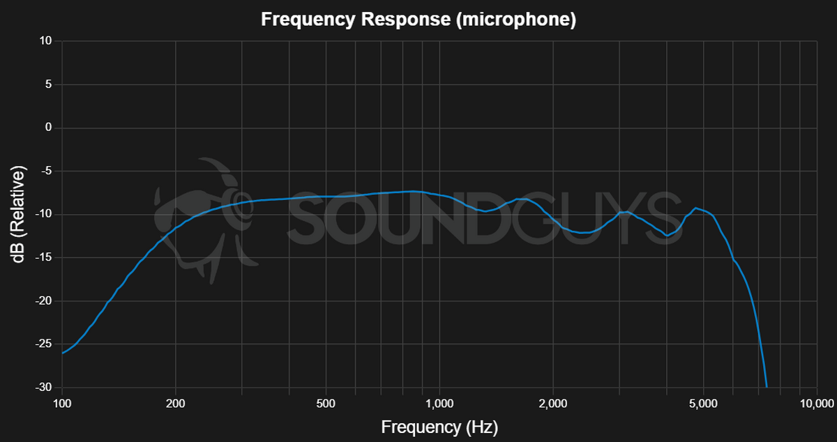 В Sony WH-1000XM5 8 микрофонов, при этом только 4 используются для разговоров. В тихих условиях запись детальная, первые слова приглушаются и слышно слабые щелчки. В шумных условиях качество записи заметно хуже, разобрать слова можно. На записи ощутимо недостает баса в нижнем диапазоне, это хорошо видно по ачх ниже.