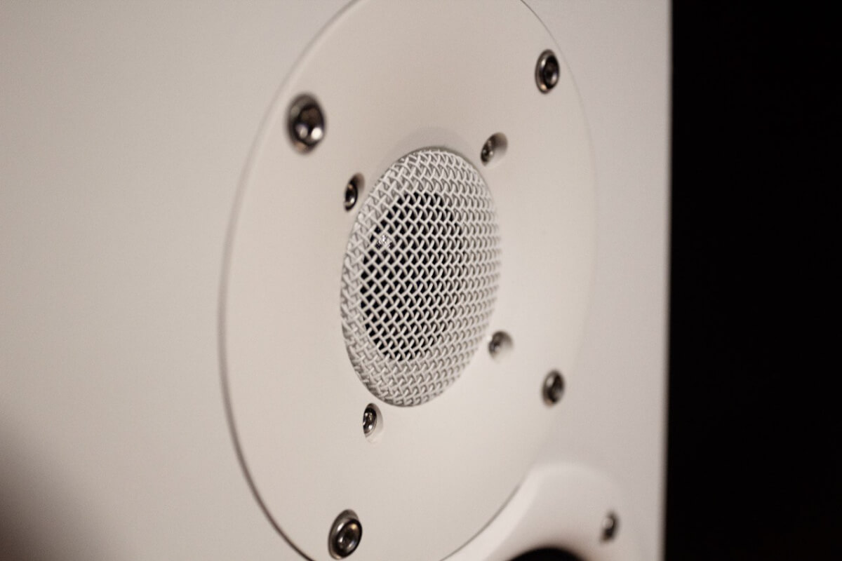 Низкочастотный драйвер (НЧ) выполнен из пластика (полипропилена). 5 дюймов позволяет мониторам звучать до слышимых 70 — 80 Гц, а заявлено производителем 54 Гц. Нужно учитывать комнату и расположение колонок. В моём случае мне удалось опереть мониторы на моду комнаты и они играют довольно низко.